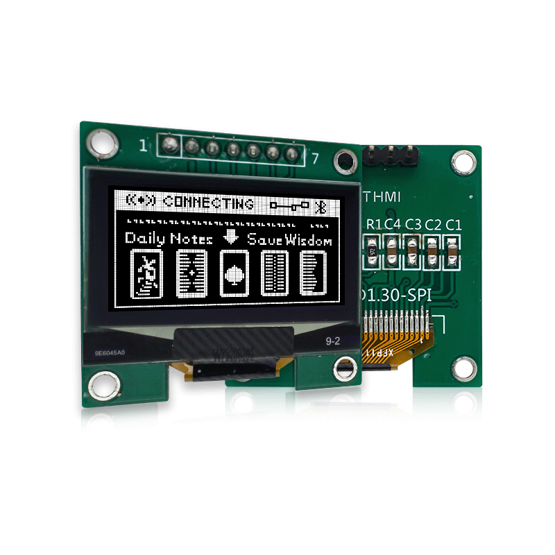 This 1.30-inch white monochrome graphic OLED display features a built-in SSD1306 controller and requires a power supply of 3.3 V. It offers great viewing angles and crisp, vibrant graphics. The display module can be interfaced using either serial or parallel communication. It operates in a wide temperature range of -40 to 85 degrees Celsius, making it ideal for use in a variety of environments, including harsh ones. The display is compatible with Arduino and other popular development boards. It also comes with a touchscreen and EMI-shielded FPC.